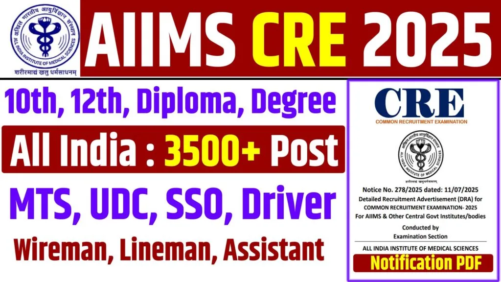 - AIIMS CRE Exam Date : 25 – 26 August 2025