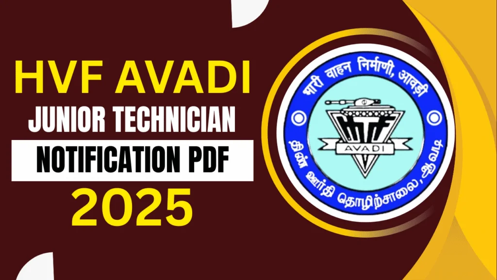 For more complete information kindly read the Heavy Vehicles Factory HVF Junior Technician Recruitment Exam Notification 2025.